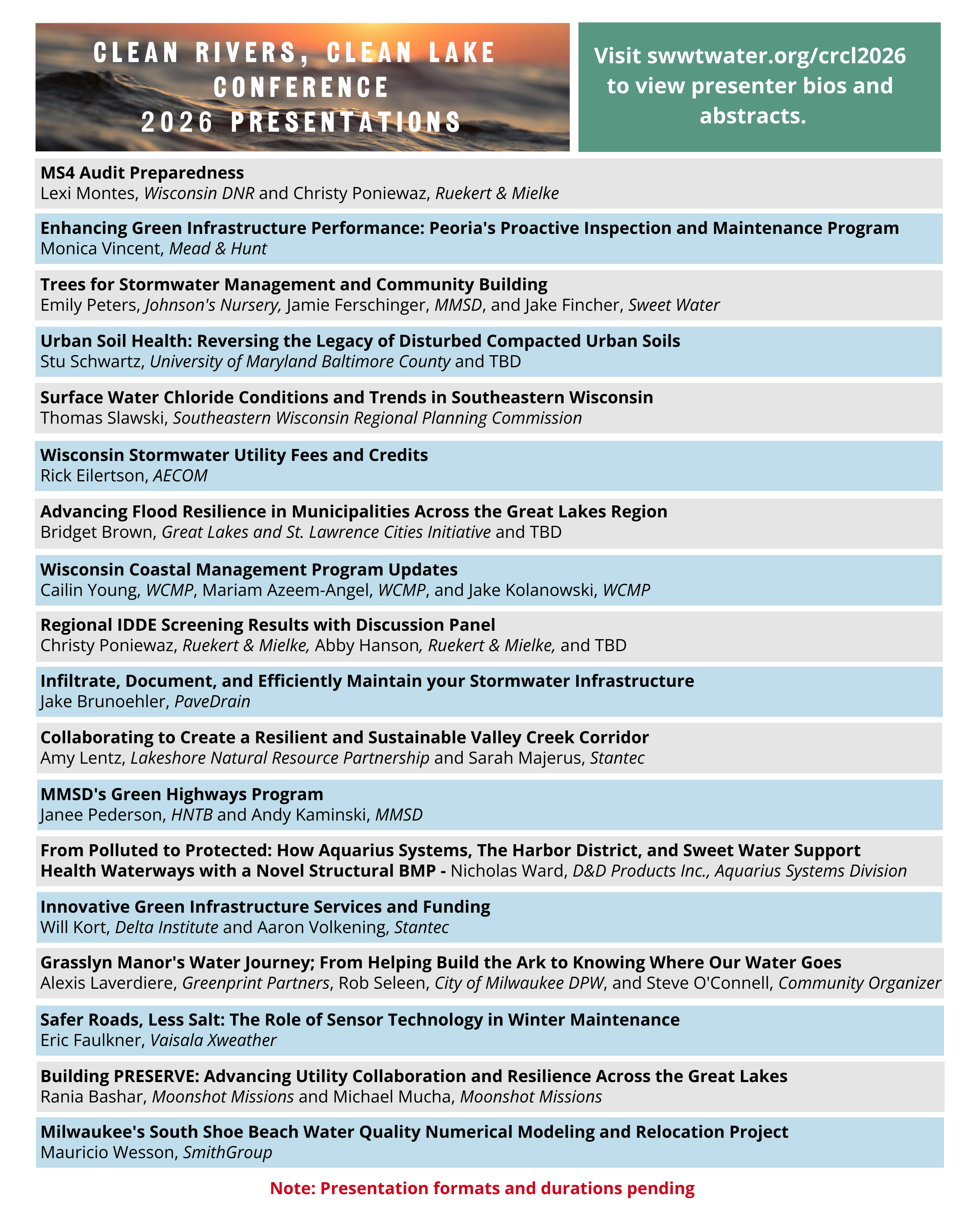 Click here to view highlights from the 2025 Clean Rivers, Clean Lake Conference!